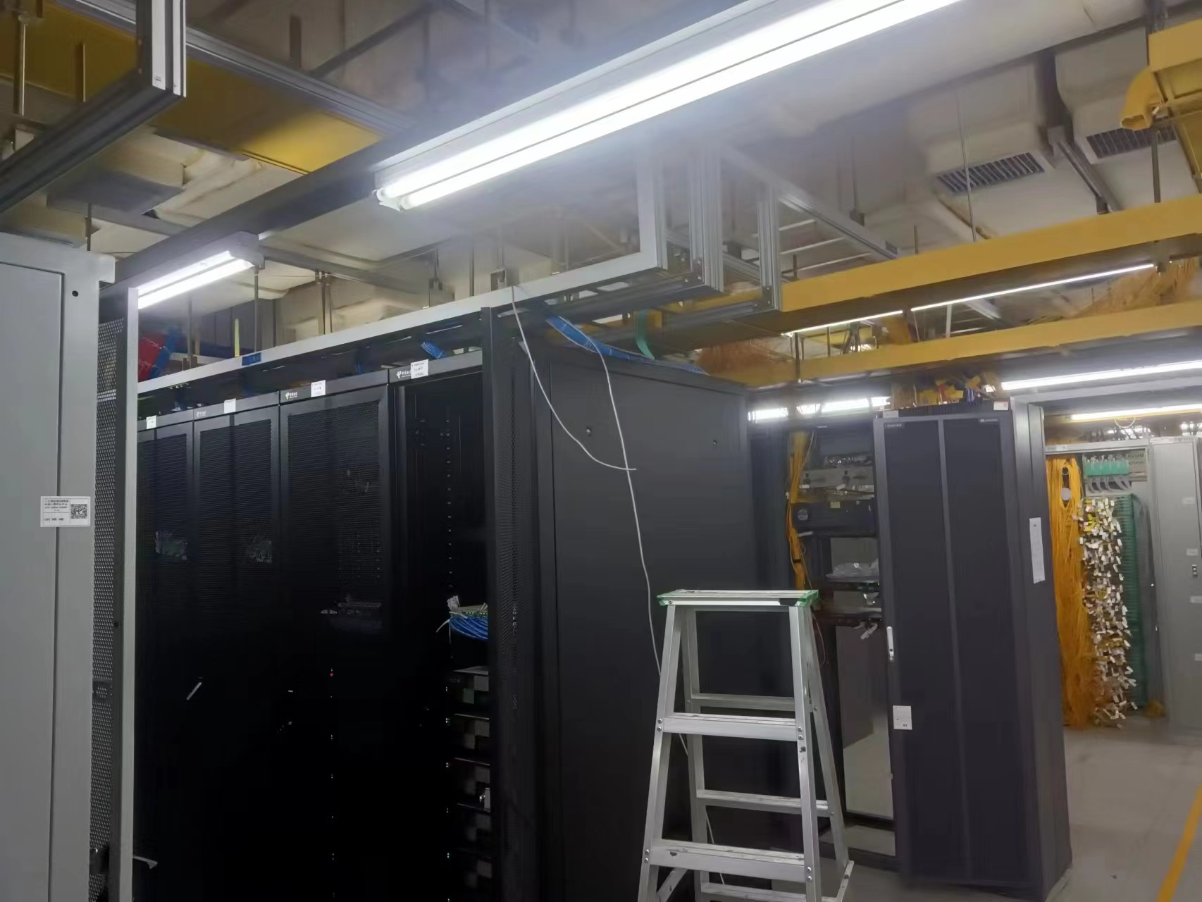 地板布線這是一種最常見的布線方式,它充分利用了地板下的空間,但要注意地板下漏水、鼠害和散熱,還應保證在每個機櫃下方開鑿相應的穿線孔 (包括地板和線槽)。吊頂布線方式特別適合於經常需要布線的機房,目前也非常流行,此方式中吊頂內包含了各種布線電源、弱電布線,在每個機櫃上方開鑿相應的穿線孔(包括地板和線槽》,當然也要注意漏水、鼠害和散熱。